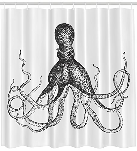 Octopus Shower Curtain Nautical Decor by Ambesonne, Octopus Print Kraken in Ocean Theme Sea Creatures Print Fabric Art Painting Design Home Decor Bathroom Accessories Gray and White Shower Curtain