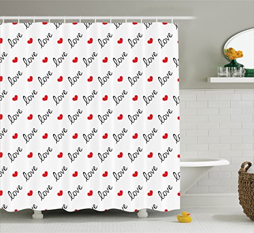 Love Shower Curtain by Ambesonne, Love Valentines Day Calligraphy Illustration Ornament Stylish Illustration Art, Fabric Bathroom Decor Set with Hooks, 70 Inches, Vermilion Black