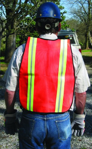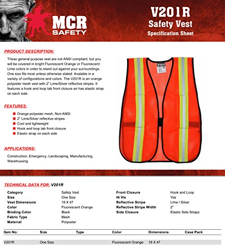 MCR Safety V201R Polyester Mesh General Purpose Safety Vest with 2-Inch Lime/Silver Reflective Stripe, Fluorescent Orange