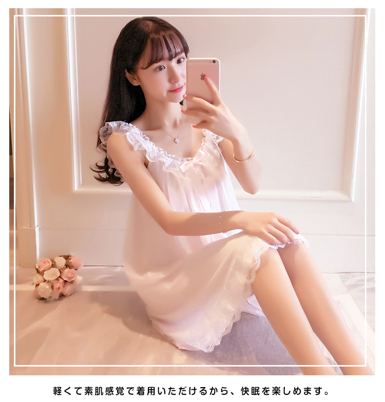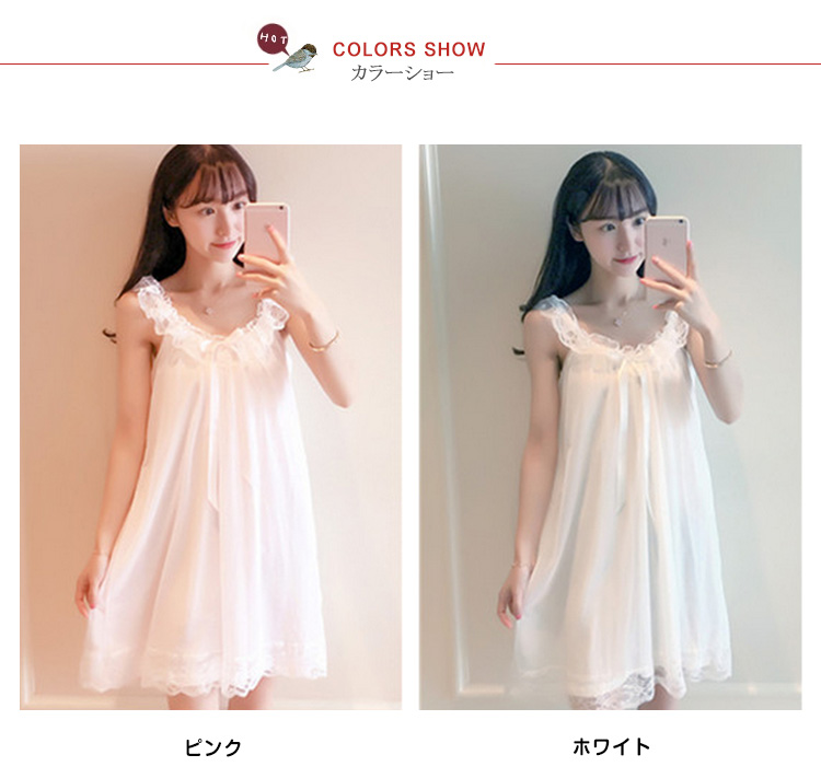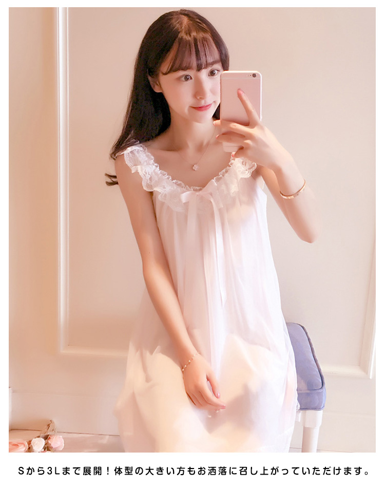 | 可愛く涼しい夏キャミソールパジャマです。肌触り優しい上質な素材で着心地抜群軽やかなレースフリルが乙女の甘いテイストを溢れ、女の子可愛い。エアリーなチュールが風や動きになびく揺れるシルエットがフェミニンな印象。軽くて素肌感覚で着用いただけるから、快眠を楽しめます。Sから3Lまで展開!体型の大きい方もお洒落に召し上がっていただけます。背中見せデザインがセクシーを演出し、夏っぽい涼しい!じめじめ蒸し暑い猛暑にも快適な睡眠をサポート。 | |