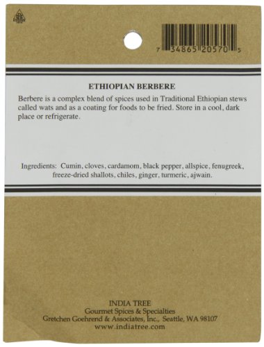 -. Feature : Berbere is a complex blend of spices used in traditional Ethiopian stews called wats and as a coating for foods to be fried / Store India Tree Ethiopian Berbere in a cool, dark place or refrigerate / Only the finest quality herbs and spices were used in creating this classic blend from a traditional recipe / India Tree Ethiopian Berbere is a blend of premium cumin, cloves, cardamom, black pepper, allspice, fenugreek, shallots, chiles, ginger, turmeric, and bishop's weed