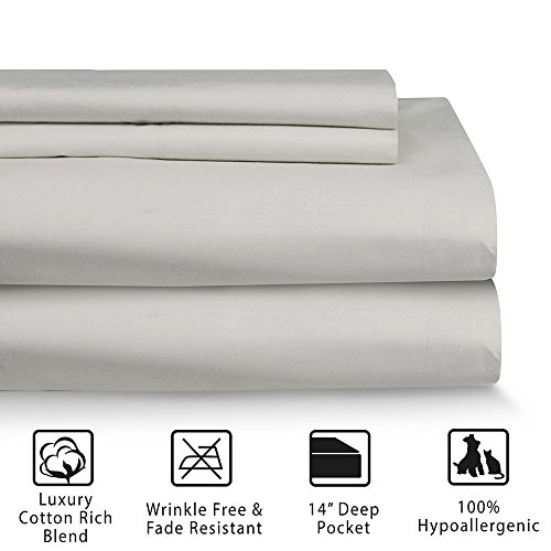 Hotel Laundry Collection Luxury Cotton Rich Sheet Set, Hypoallergenic, Deep Pocket, Wrinkle & Fade Resistant (Twin, Gray)