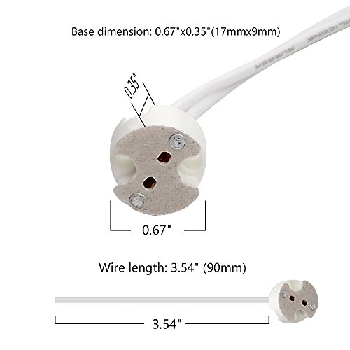 - Ceramic material High temperature resistant, insulated wire could stand temperature 180 degree. Pre-stripped wire ends and soldering might be applied for permanent installation. Two holes for bulb contact pins, and the other two holes for affixing screws.