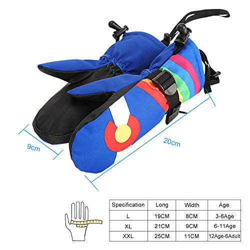 Binding : Apparel Product Description Description: 1.Elastic tape constrictive design. The adjustable buckle wrist strap can effectively prevents against cold air outside Dimensions M size- Hand length: 6.0"/15cm. Hand width: 2.9"/7.5 cm. S size -Hand length: 5.1"/13cm. Hand width: 2.5"/6.5 cm. Super breathable design,keeps your hands dry and comfortable in the whole winter. Additional botton makes the gloves hooked together, in case of loss. The special cuff design can effectively stop the wind getting into the gloves. Color:Red, Acid Blue,Yellow, Dark Grey. Weight: 0.23 lb/107 g. Friendly Tip: Please refer to the size list before purchase. If inconvenience, you can use a bank card to compare. In generally, The bank card is 8.5cm. Package included: 1*Pair of Ski Gloves 0
