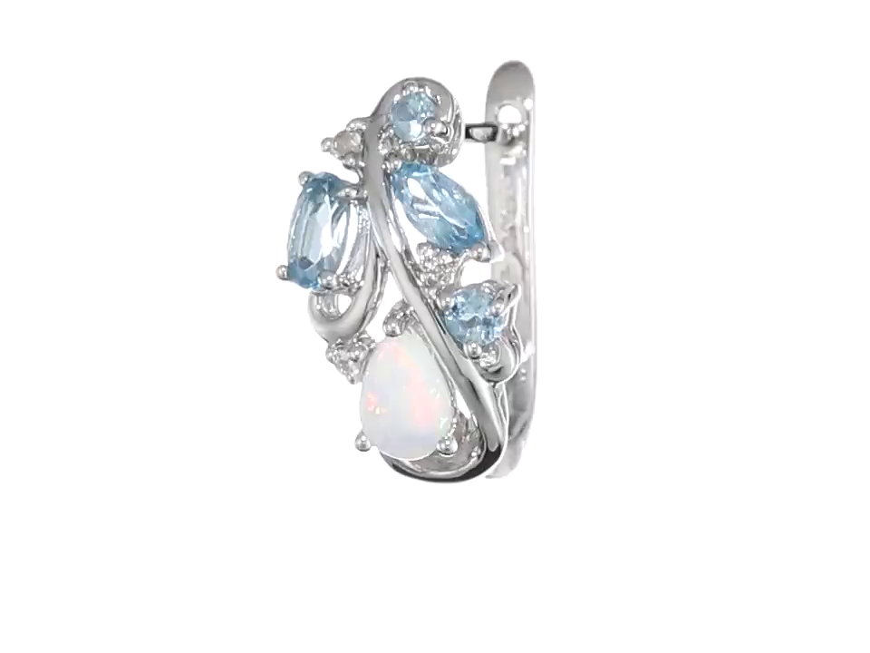 Sterling Silver earrings with pear shaped created opal, marquise, oval and round shaped Swiss blue topaz, with diamond cut white topaz accent hoop earrings