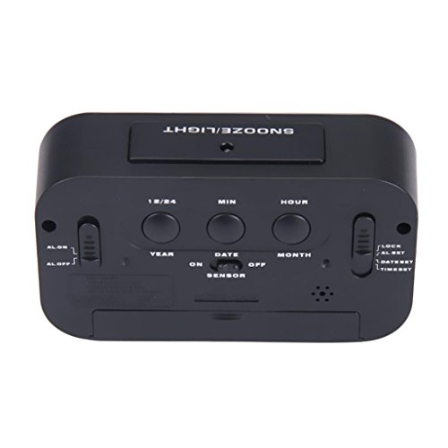Studio : DEESEE(TM) Publisher : DEESEE(TM) Binding : Kitchen Product Description Features: 100% Brand new and high quality. Quantity: 1 ? Size:13*4.5*7cm/5.1*1.8*2.8" ? Color:Black,Green,HotPink,White New fashion design, Very popular. Support Time, Calendar Large LCD Display ,easy to read numbers Snooze function, snooze interval adjustable Time display: 12-hour or 24-hour mode Can be placed in the car, office, home Built-in sensor to turn on/off the White backlight automatically ? Automatic photosensitive Battery Requirement:3 x AAA Battery(Battery not included) Package Include: 1PC LED Digital Snooze Alarm Clock Light Control Backlight Time Calendar 0