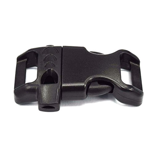 5/8" Contoured Plastic Emergency Survival Whistle Buckle for Paracord BraceletsBlack 25 Pack
