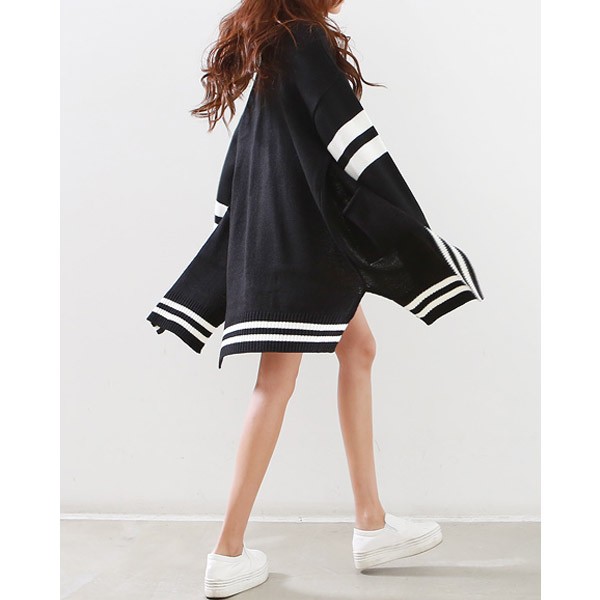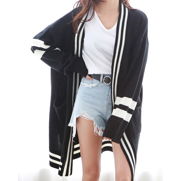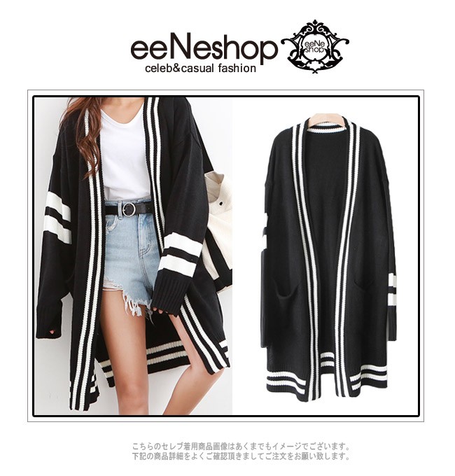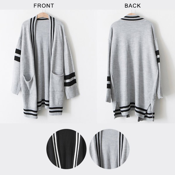 配色ライン ロング丈 ニットカーディガン☆