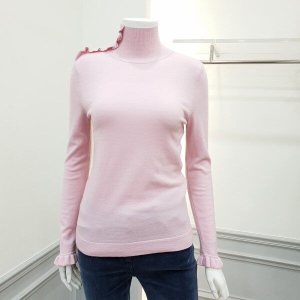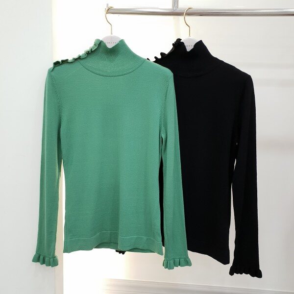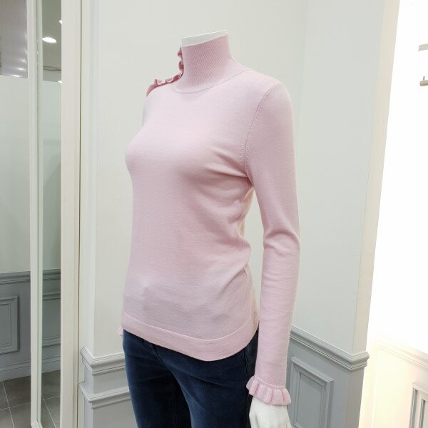 하이게이지의 여성스런원단의 기본형풀오버로 네크에 프릴장식변형을줌~기본이너로 활용도가 높아용♡
