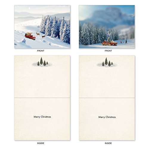 10 beautiful assorted (4'' x 5.125'') Merry Christmas note cards & white envelopes.