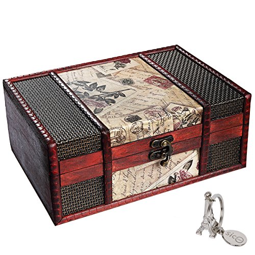 -. Title : SiCoHome Small Trunk Box Vintage Jewelry Storage Organizer Wooden Case Treasure Chest/Decorative Box