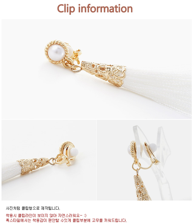 TIP!TIP!TIP! 클립형 제품은 고객님 귓볼의 도톰한 정도에 따라서 아프실 수도 있답니다~ 많이 도톰해서 아프신 경우 클립을 벌린 다음 살짝 뒤로 더 젖혀주신 후 착용하시면 좀 더 편안하게 착용하실 수 있어요~ 너무 힘을 주시면 부러질 수 있으니 살짝만 힘을 주셔야 해요~