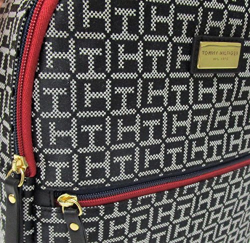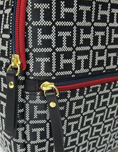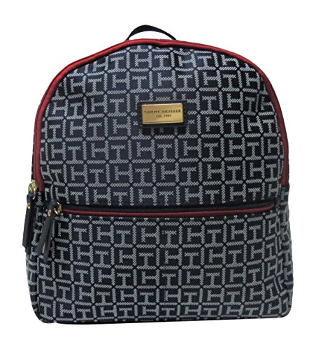 Small, fabric backpack by Tommy Hilfiger; Faux leather trim.