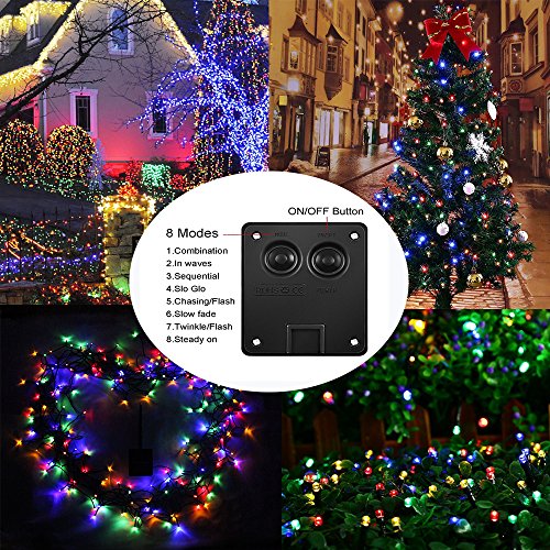 LED String Light - Autbye Newest Design 200 LED Solar & AA Dry Battery 2 Ways-powered Starry Lighting 72ft 22m 200 LED 8 Modes Multi Color Christmas Waterproof Fairy String Lights