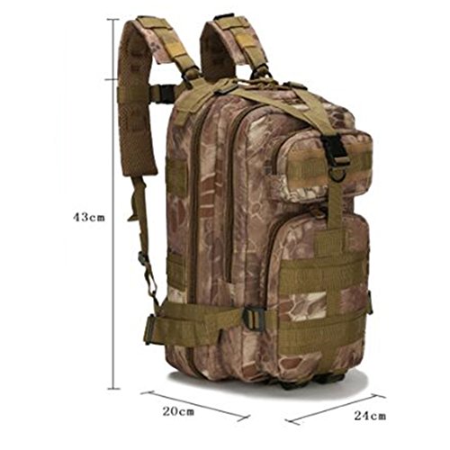 -. Feature : MOLLE style accessory loops on front.Perfer for camping ,hiking ,daypack. capacity : about 25L / Wide and thick waist belt, comfortable for heavy carry,heavy-duty water resistant Nylon pack cloth construction and oversized zippers for extra durability / Padded and adjustable shoulder straps help relieve pressure on shoulders while carrying heavy loads. / Multiple pockets to meet you at the most.Well crafted and tested, high capacity and comfortable carrying. / Color:Jungle Digital;Dimension: 24 x 20 x 43cm/9.4 x 7.8 x 16.9inch