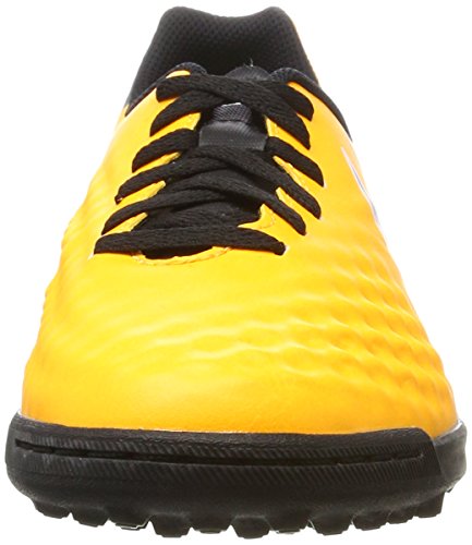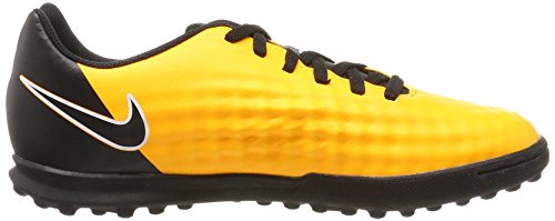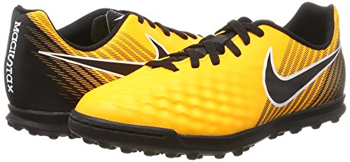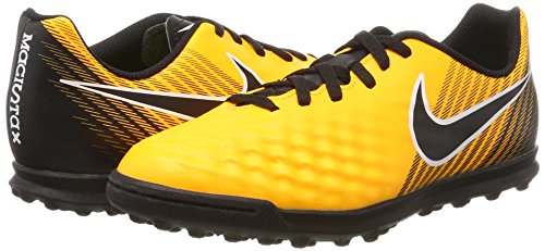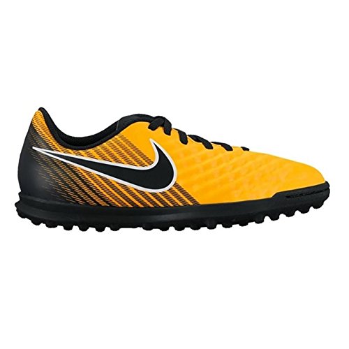 Studio : Nike Publisher : Nike Binding : Misc. Product Description Kids' Nike Jr. MagistaX Ola II (TF) Turf Football Boot Amplify your playmaking in Kids' Nike Jr. MagistaX Ola II (TF) Turf Football Boot. A new streamlined silhouette offers a closer fit with less material in the upper. Synthetic leather ensures you get the touch you need to make big plays. Streamlined silhouette provides a lighter, closer fit. Synthetic leather conforms to the foot for a consistent touch. Asymmetrical lacing system expands the ball control area. Interior heel counter cups the foot for cushioning and a locked-down fit. Rubber compound is engineered to provide grip on turf surfaces. Grade school size range is 1y-6y. 0