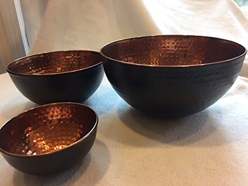 STAINLESS STEEL BOWL SET OF 3 BLACK POWDERED EXTERIOR. HAMMERED COPPER INTERIOR (MCP-090)