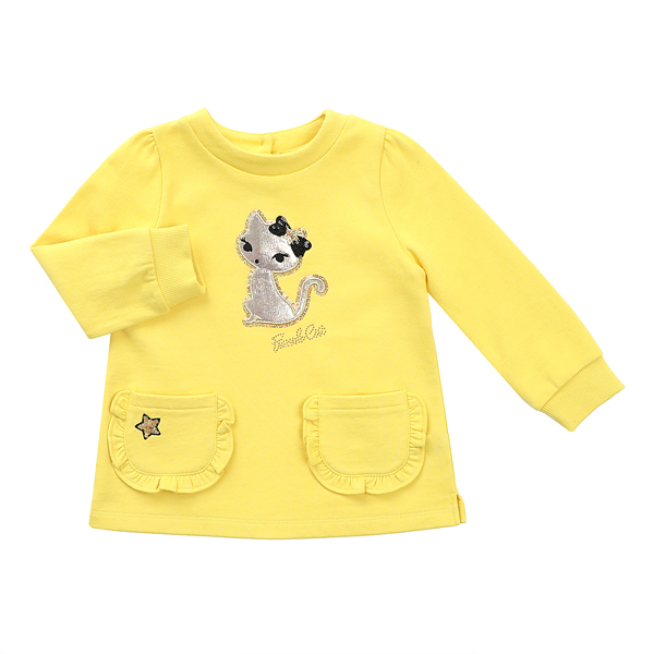 상품설명 엘로우 컬러의 포켓이 달린 롱티셔츠 입니다. 앞포켓에 제원단 프릴 장식이 들어갔고 고양이 스팽글 장식이 들어가서 러블리하면서도 블링블링한 아이템입니다. 하운드 투스 레깅스나 별 레깅스와 함께 코디하시는 것을 추천드립니다.