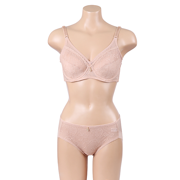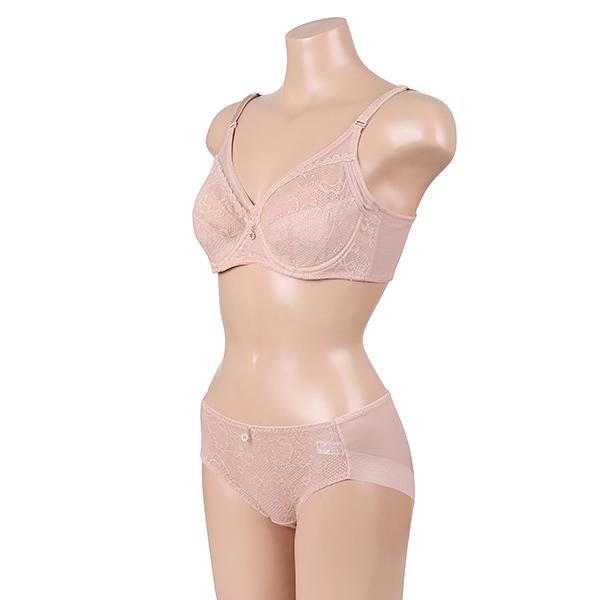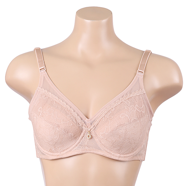 여성스러운 베이지컬러의 레이스와 기능성 파워네트를 사용한 부인용 풀컵브라.