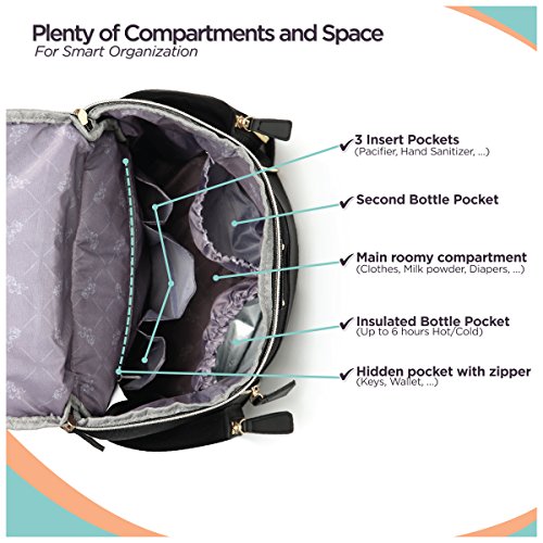 MOM AND PROUD, UNLOCK YOUR STYLE - The easiest way to add fashion to an outfit is by accessorizing it which will not be the case if you lug an ugly diaper bag all over the place. Our Incredibely clean, minimalist lines extend the sophistication of a stylish backpack embellished with elegant zippers. And because you sailed out the door with little more than lipstick, keys, and cell phone our new design offers space and a lot of inside pockets.This large diaper backpack is perfect for everyday use