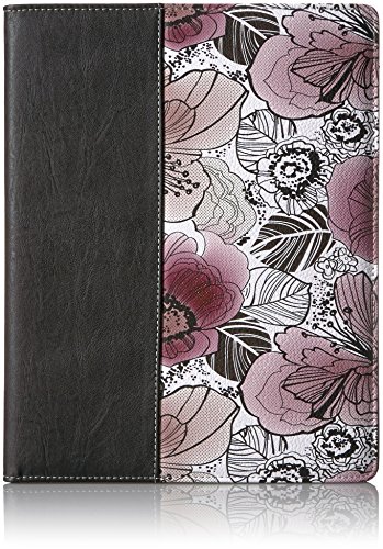 Floral Faux Leather w/ Black Faux Leather Trim. Nylon lining w/2 document pockets. ID window. pen holder loop.