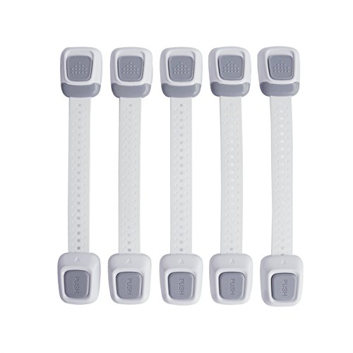 Baby Safety Locks, Byzone Locks Applicable for Drawer, Toilet Seat, Dishwasher,Door, Refrigerator with Strong 3M Adhesive Adjustable Strap (5-Pack Gray)