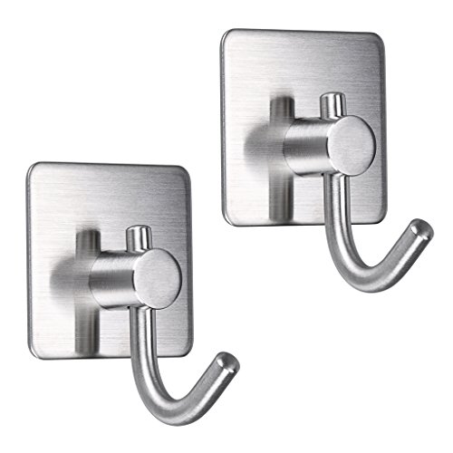 Sumnacon 3M Self Adhesive Coat Hooks, 2 Pcs Stainless Steel Heavy Duty Contemporary Garment Towel Key Utility Hooks for Bedroom Bathroom Office