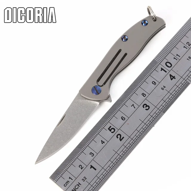 | [해외] DICORIA 미니 작은 F95 스타일 D2 블레이드 접는 칼 TC4 티타늄 핸들 야외 기어 전술 캠핑 사냥 칼 EDC 도구 |