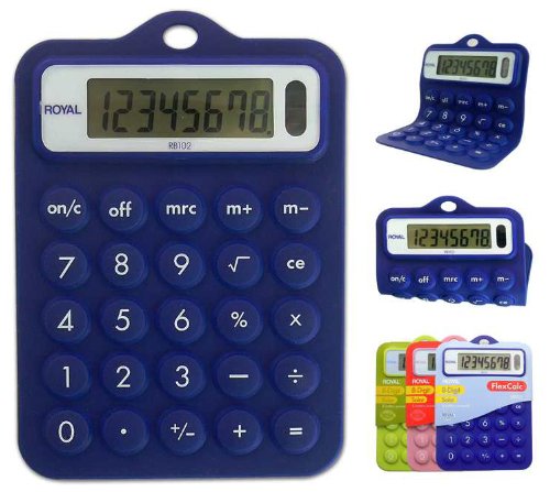 -. Binding : Office Product -. Brand : Royal -. Color : Blue -. Department : Electronics -. EAN : 0163120684816 -. Feature : Flexible Full Rubber Body & Keyboard / Full-function Memory / Percent & Square Root Keys / Blue / Full Flexible Rubber Body / Full Function Memory / Percent key / Square Root key / Solar & Battery Powered -. IsAutographed : 0 -. IsMemorabilia : 0 -. Label : Royal -. LegalDisclaimer : We do not in any way represent that any part we sell is legal to possess in your jurisdiction. Check with you local authorities to ensure it is legal for you to possess before buying! -. Manufacturer : Royal -. MediaType : No -. Model : RB102-Blue -. MPN : 29311R -. NumberOfItems : 1 -. PackageQuantity : 1 -. PartNumber : 29311R -. ProductGroup : CE -. ProductTypeName : CALCULATOR -. Publisher : Royal -. Size : One Size -. Studio : Royal -. Title : Royal RB102 Rubber Calculator - Blue -. UPC : 070090023333 -. Warranty : ONE YEAR