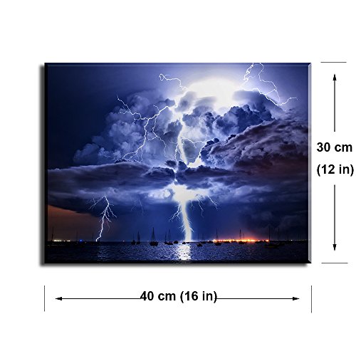 1: Beautiful lightning canvas wall art printed and framed by PIY Painting. The artist-grade canvas has strong sense of texture and full of artistic touch, reflects your noble temperament and taste. This canvas picture dimensions: 12"x16"x 1 piece = 30x40cm x 1 piece, close to A3 size.
