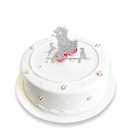 Moon Shine Personalized Wedding Cake Topper Decoration Bride and Groom with Pets Silver