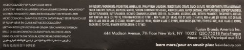 Studio : Fusion Beauty Publisher : Fusion Beauty Binding : Health and Beauty Product Description A collection of vibrant sexy shades with a moisturizing treatment gloss infused with LipFusion’s revolutionary Micro-Injected Collagen plumping technology. Tiny, dehydrated, marine collagen micro spheres are instantly absorbed by the lips, and seek out the body's natural moisture. When spheres become re-hydrated, they plump and hold onto the moisture they've collected, creating a mild "swelling" of the lip tissue. 0