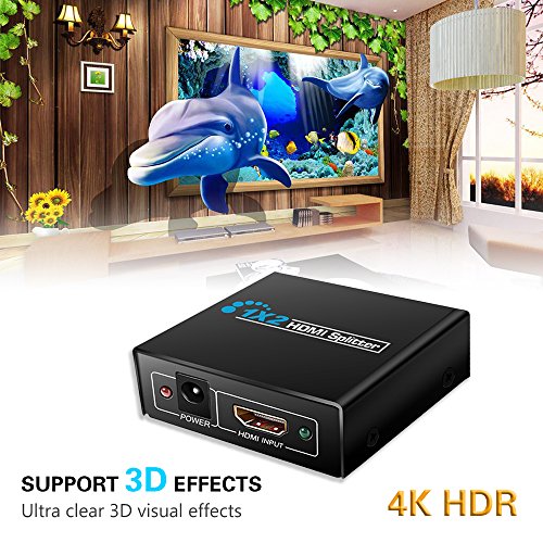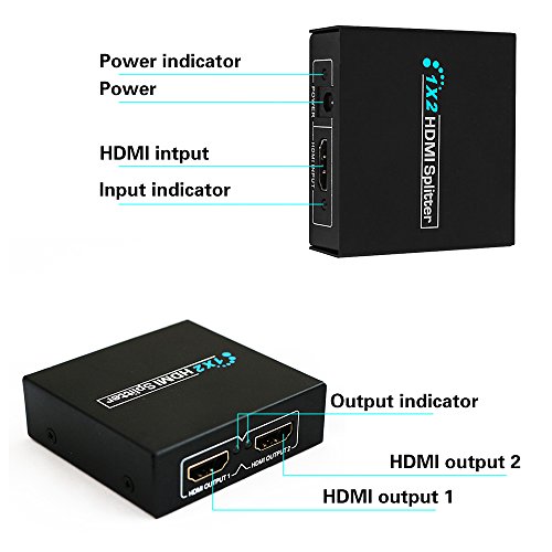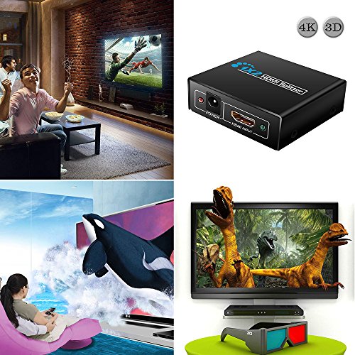 Hdmi Splitter,Keliiyo 1x2 Powered 4K hdmi splitter Dual Monitor for Full HD 1080P Support 4K/2K and 3D Resolution(One Input To Two Outputs)