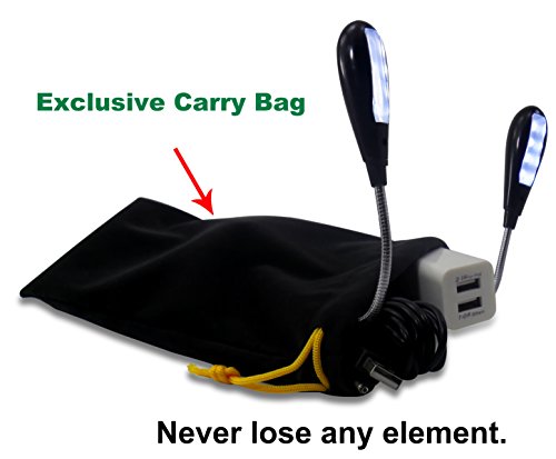 Ecologic Mart 8 LED Bulbs Book Light with 1.5H Rechargeable 1000mAh Battery, 1.0A & 2.0A AC Adapter Double Port, 78-Inch Extra Long USB Cable, Travel Bag