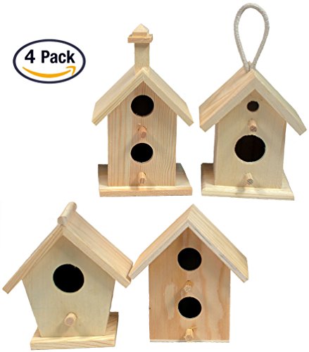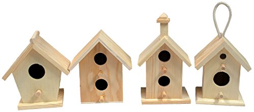 Creative Hobbies Mini 4 Inch Tall Birdhouse, Set of 4 Styles, Unfinished Wood Ready to Paint or Decorate