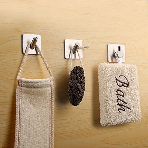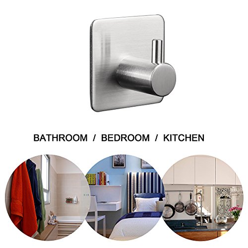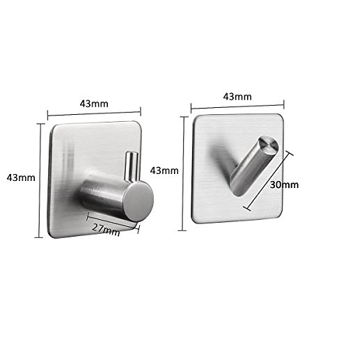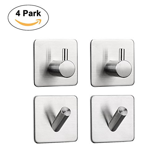 304 Adhesive Hooks Stainless Steel Towel Hooks Sitck On Wall Hook Heavy Duty Brushed Finish(4 Packs)
