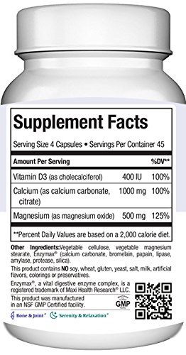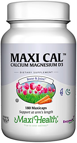 Maxi Health Kosher Maxi Cal Calcium Magnesium D3. Description: Supports Healthy Bones. Certified Kosher. Doctor Formulated. Maxi Cal is a calcium formula with magnesium and vitamin D3 in a vegetarian capsule to maintain strong bones and to support the proper functioning of the electrical impulses that control our muscles. Calcium, though often taken for granted, is needed not just for strong bones and teeth, but also for maintaining healthy hormone levels, neurotransmitters and optimum heart function. Vitamin D3 is essential to maintain healthy blood levels of calcium and is necessary for healthy bones and teeth. Magnesium is needed to maintain healthy bone and muscle. It plays a role in making new cells and forming the cellular energy the body needs to function. Maxi Cal has a fine balance of calcium citrate and calcium carbonate for those people who have a delicate and sensitive digestive system. For optimum bone health, try Maxi Cal today. Free Of Soy, wheat, gluten, yeast, salt, milk, artificial flavors, colorings and preservatives. Disclaimer These statements have not been evaluated by the FDA. These products are not intended to diagnose, treat, cure, or prevent any disease.Feature