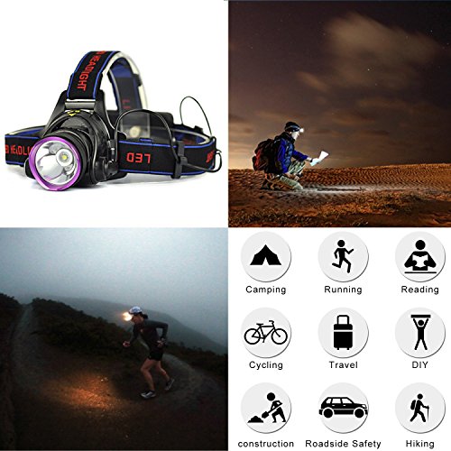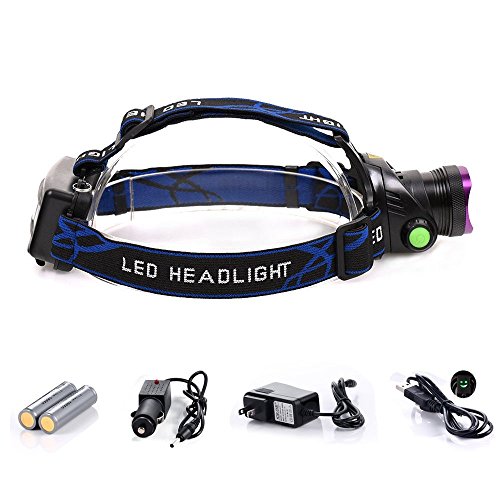 Package Includes:1x Headlamp,1x Wall 18650 battery Charger,1x Car Charger,2 x 3.7V li-ion 2200mAh 18650 Rechargeable Batteries,1x Special USB Cable Charger