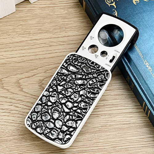 A Jewelry Loupes, loupe led - 30X 60X 90X LED watch illuminated eye Magnifier for Gems jewelers Jewelry Rocks Stamps Coins Watches Hobbies Antiques Models office geography - Silver white (silver)