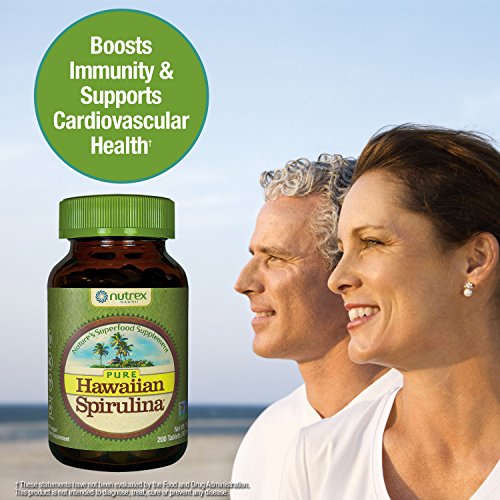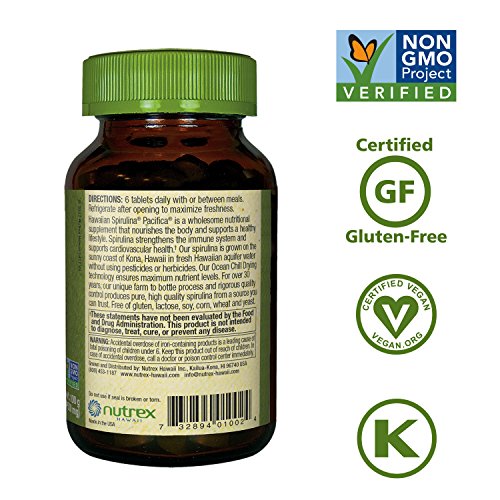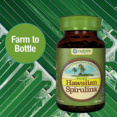 Hawaiian Spirulina is a blue-green microalgae, Arthrospira platenesis, which is grown naturally under the intense Hawaiian sun on the Big Island of Hawaii. It naturally contains protein, iron, beta carotene, minerals, vitamin B12, zeaxanthin, chlorophyll, and phycocyanin. One 3 gram serving has higher levels of some key antioxidants, enzymes, and minerals compared to 5 servings of fruits and vegetables. Ideal for vegans. · Nutrex Hawaii, founded in 1999, is the leading producer of natural microalgae supplements from Hawaii. Farm to Bottle, we control the cultivation, harvest and processing of our Hawaiian Spirulina and BioAstin Hawaiian Astaxanthin microalgae products. We are GMP (Good Manufacturing Practices) third-party certified. All of our products are pesticide and herbicide free, non-GMO, free of gluten, soy, lactose, and preservatives.Feature