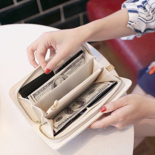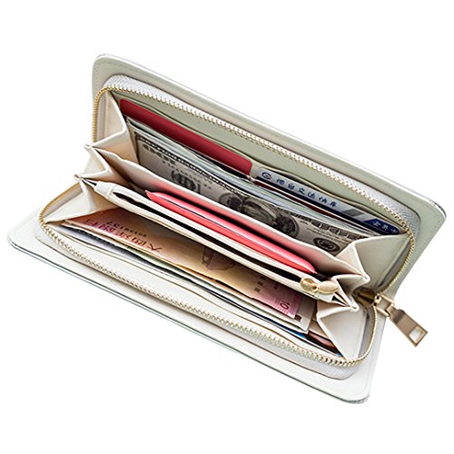 Large Capacity: 1 x zipper coin pocket, 2 x bill holders, 3 x large cash compartments, 8 x card slots. It is convenient to hold your cash, receipts, coins, cards, driver license, passport, phone and so on.