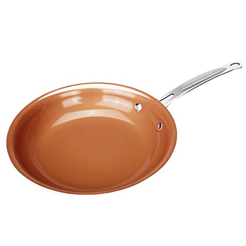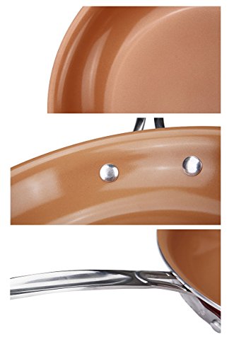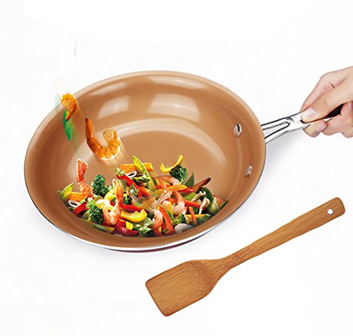 Yzakka Red Copper Pan Ceramic Round Nonstick Frypan with Turner Fry Pan for Gas Stove, 7.8 Inches
