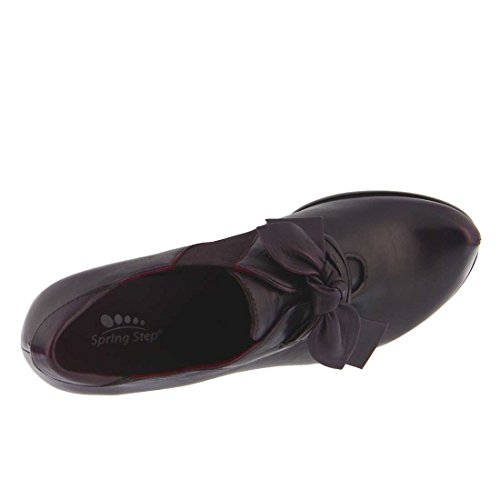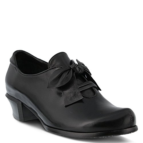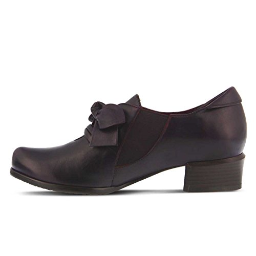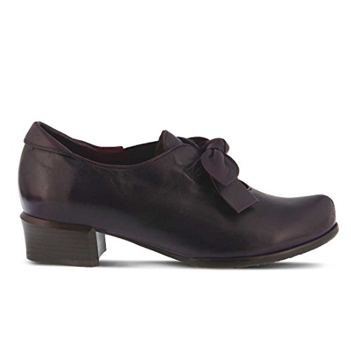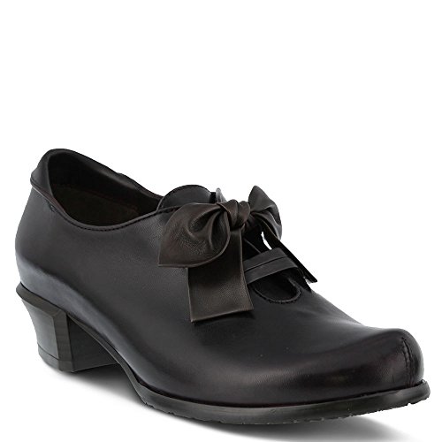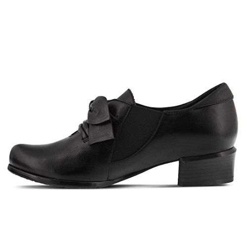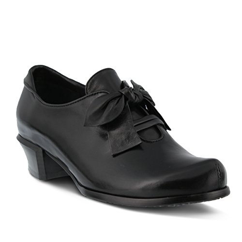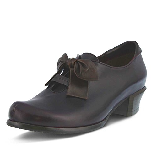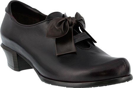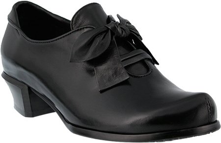 Product DescriptionFeminine polished leather slip-on heeled loafer fashioned with a polished leather bow and unique heel.0