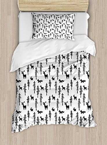 (Ambesonne)/Bedding Bath/Bedding/DIRECT FROM USA/Forest Decor Duvet Cover Set by Ambesonne, Christmas Spirit Inspired Sketchy Reindeer Pine Tree...