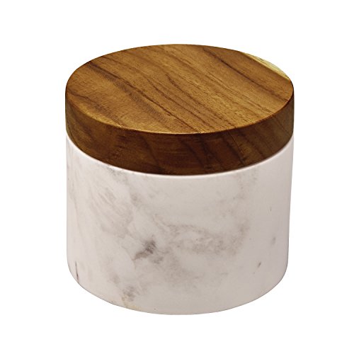 Anolon 46647 Pantry Ware Marble Salt Cellar with Teak Wood Lid, 5.25 oz, White