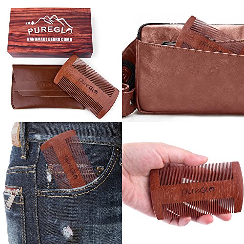 ★Beards man Gift: The red beard comb comes with a faux leather pouch in a premium gift box_ it can be a great gift to Dad_ fiance or husband ★Natural Red Sandalwood: The premium red mustache comb is 100% handcrafted with organic scent which can help to reduces stresses and promotes clear thinking ★DUAL ACTION TEETH: Designed to give you maximum grooming precision regardless of beard types like sideburns_ upper and lower lip grooming ★No Pulls_ Snags_ Static: The Static Free Sandalwood Comb will not scratch your face and pull your out your beard_ mustache or hair ★Pocket Size(4inch*2.8inch): Easily keep your comb in jean or shirt pocket - being a groomed man on your way to work or to the gym