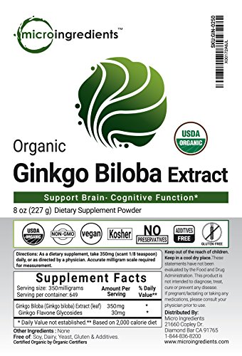 Micro Ingredients USDA Organic Ginkgo Biloba Extract, 8 Ounce