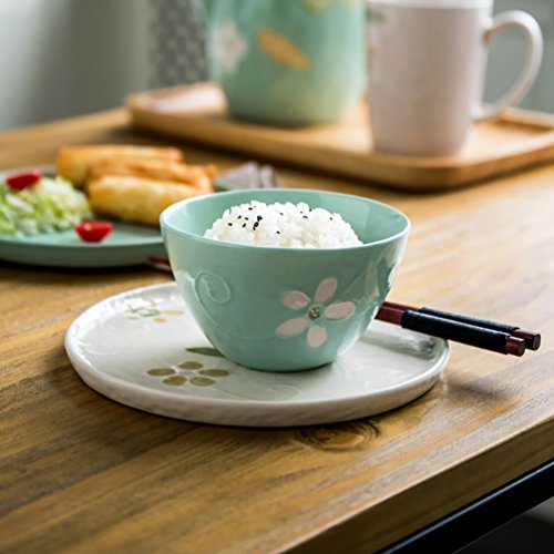 Onlycook Porcelain Bowls Sets 4.5”Hand Painted Ceramics for Salad/Pasta/Soup/Rice (5.5", green)