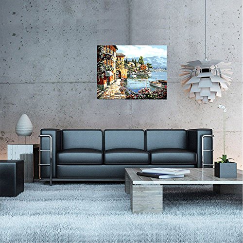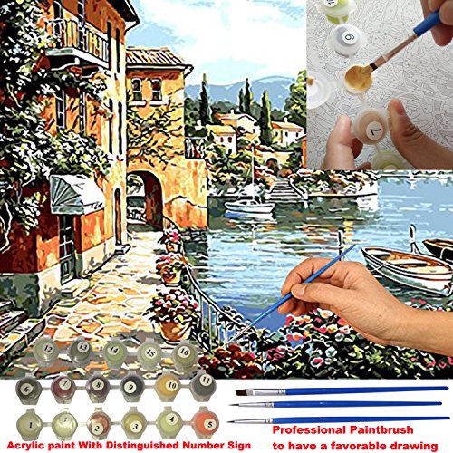 Paint By Numbers DIY Acrylic Painting Kit For Kids & Adults By iCoostor – 16” x 20”Silent Harbor Pattern With 3 Brushes & Bright Colors