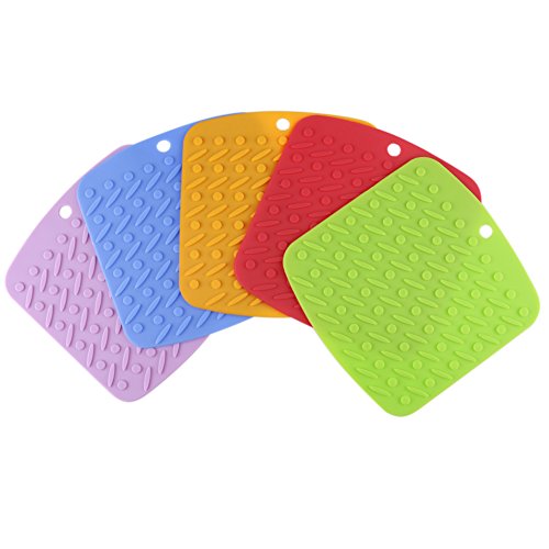 -. Title : 5 Pcs Silicone Insulation Mat,for kitchen Tableware Non-slip,Heat Resistant ,Drying, Flexible Potholders Square Insulation pads